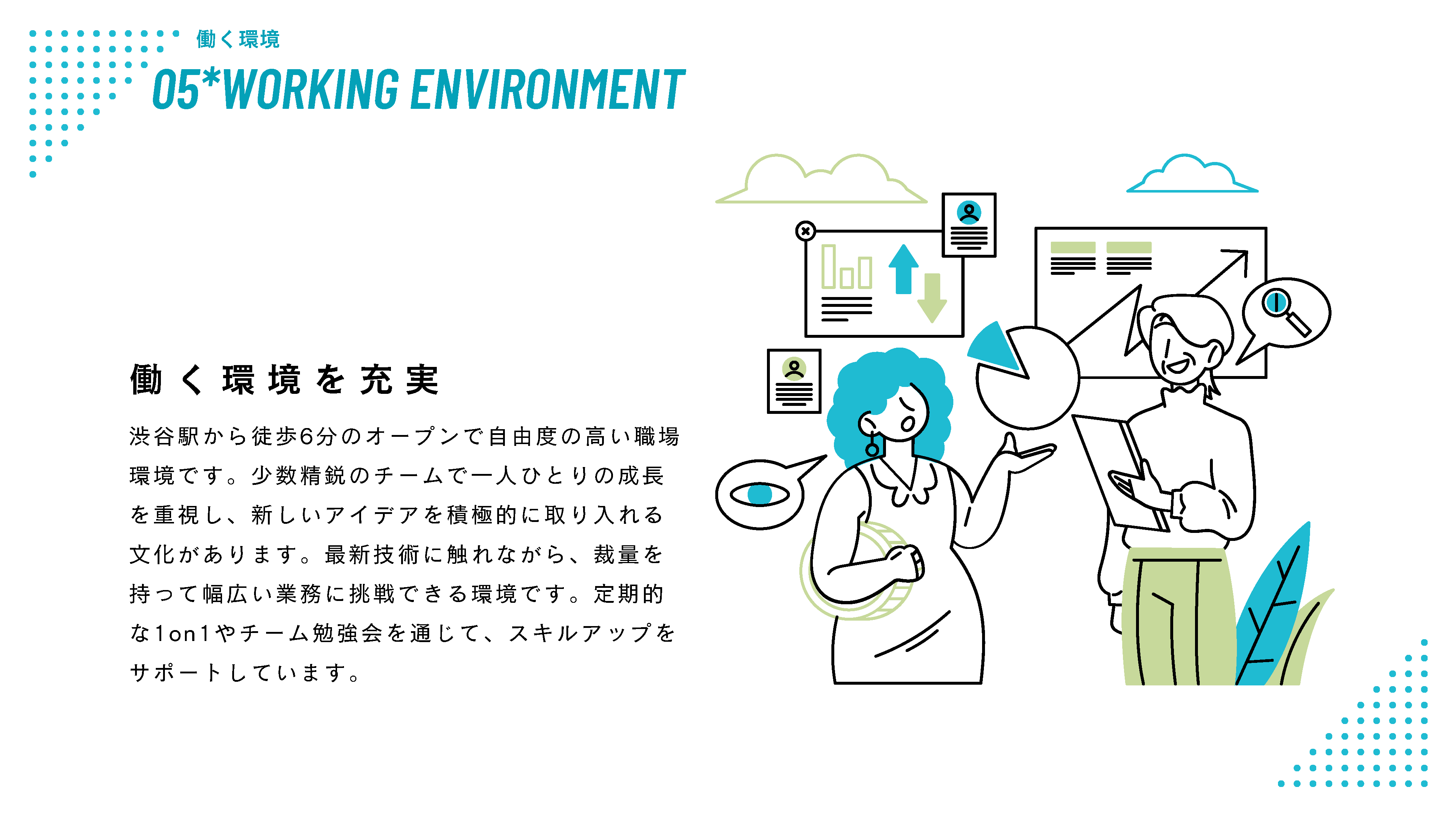 • 年間休日日数 104日+年末年始休暇+有給休暇